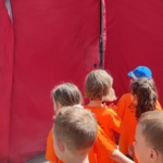 W połowie września chętne dzieci uczestniczyły w seansie filmu animowanego w Kinie Sferycznym. Na zdjęciach widać, że pozycja horyzontalna sprzyjała relaksacji, aczkolwiek wymagana była też szczypta dzielności – w końcu była to zamknięta, mroczna przestrzeń! Nikogo to nie pokonało 🙂