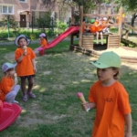 - wszystkie przedszkolaki zapoznały się z zasadami kompostowania i późniejszego wykorzystania odpadów bioorganicznych w formie nawozu; na całej przestrzeni naszego wspaniałego ogrodu każdy chętny zuch mógł pracować z użyciem grabi i taczek, by zredukować trochę ilość opadłych liści klonowych, które w dużej mierze napełnią kompostowniki; dodatkowym walorem tej pracy była nauka radosnego współdziałania 🙂