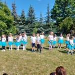 Nasi wspaniali zerówkowicze z grupy III („Smoki”) zaprezentowali kultowe piosenki znane z „Akademii Pana Kleksa” – „Kaczkę Dziwaczkę”, „Kwokę” i „Lenia”. W kolorowych perukach odśpiewali piosenkę M. Jeżowskiej pt. „Tydzień u fryzjera”. Była też „Rzepka” J. Brzechwy, wiersze i piosenki dla rodziców oraz finałowa piosenka „Pożegnanie Przedszkola”. „Smoki” wystąpiły zarówno przed rodzicami zaproszonymi na uroczystość zakończenia roku szkolnego, jak i przed przedszkolakami, które jeszcze nie zdają sobie chyba sprawy z tego, że za rok, dwa, jako następne pokolenia, sami opuszczą mury Przedszkola… 🙂