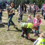 Dziękujemy również organizatorom za zaproszenie na festyn w Przedszkolu nr 131! Ogrom atrakcji był niemal przytłaczający – z pewnością wszystkie dzieci spały tej samej nocy „jak trusie” ;-). Warto wspomnieć o świetnych punktach edukacyjnych Policji, Straży Miejskiej, w tym Eko Patrolu i Straży Pożarnej. Dzieci mogły posłuchać o akcjach ratunkowych, dotyczących zwierzaków dzikich, domowych, jak i egzotycznych. Obejrzeć wóz Eko Patrolu, a w nim różnego rodzaju kennele, klatki, transportery i chwytaki do zwierząt (np. łapak z workiem na węże). Strażacy zapewnili dzieciom zajęcia praktyczne pod postacią ratowania zabawek z (nieszkodliwie) zadymionego namiotu 🙂