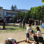 - w ogródku przy „Statku”, za skrzynkami, w których znajdowały się uprawy m.in. ziemniaków i rzodkwi, sadziliśmy byliny wieloletnie, tworząc urokliwą rabatę, atrakcyjną dla zapylaczy; dziękujemy rodzicom, którzy dostarczyli nam roślinki! (lawendę, wrzosy, hortensje, funkie, żurawki, dzwonki i inne);