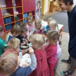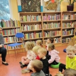– wyjście Pomarańczowych i Niebieskich Moli Książkowych (gr V i IV) do Biblioteki w Osiedlowym Domu Kultury „Pod Lipami” na lekcję zapoznawczą, dzięki której dzieci poznały budynek, zbiory biblioteczne i pracę bibliotekarki (bibliotekarzy brak na stanie). Zachęcamy do odwiedzania pobliskiej biblioteki – mają świetne książki, które można oglądać i „pochłaniać” na miejscu w przytulnej czytelni :-). W zbiorach znajdują się też komiksy i gry planszowe – dla każdego coś miłego!