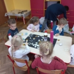 Listopad przepełniony był atrakcjami i aktywnościami, ale udało się go wspólnymi siłami udźwignąć 🙂 Podczas Dnia Postaci z Bajek (4.11) był czas na zabawę, tańce i swawole, by z kolei dnia 10.11 już z pełną powagą uczcić Narodowe Święto Niepodległości. W połowie listopada odbyły się warsztaty garncarskie, na których dzieci miały okazję poczuć w dłoniach prawdziwą, surową glinę – taką, która potem wymaga wypalenia w specjalnym piecu. Przedszkolaki tworzyły swoje małe dzieła korzystając z własnej wyobraźni i pracy rąk, pod czujnym okiem Pani artystki. Ozdoby wrócą do właścicieli po wypaleniu w ok. 1000 stopni Celsjusza :-).