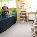 – udział starszych dzieci w projekcie przeciwdziałania stereotypom i uprzedzeniom wobec osób niepełnosprawnych, w ramach którego obejrzały teatr lalkowy pt. „Spotkanie z Arturem i Mią”,