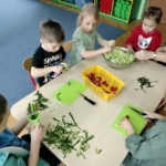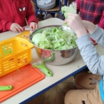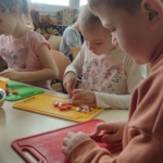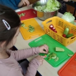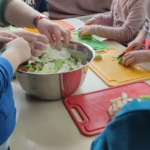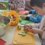 23 września, zgodnie z naszą wieloletnią tradycją, powitaliśmy jesień Metodą Porannego Kręgu, angażując wszystkie zmysły – wzrok, słuch, dotyk, węch i smak. Kilka dni później (27.09) odbyło się spotkanie pod tytułem „Motyli Wolontariat” z Gościem z Hospicjum Palium. Przedszkolaki dowiedziały się, dlaczego „Pomaganie dodaje skrzydeł”, a także działały artystycznie malując motyle (symbol kampanii, o którym więcej >>tutaj<<). 28.09 każda grupa pobrudziła sobie rączki podczas samodzielnego krojenia warzyw do sałatki jarzynowej podanej później na drugie śniadanie. Będziemy kontynuować aktywności kulinarne, szykując kolejne posiłki, a Państwo oczekujcie naszych przepisów, by móc powtórzyć je w domu już ze świadomością, że pociechy „ogarniają temat” :-)).