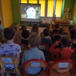 Ponadto, zgodnie z naszym zwyczajem powitaliśmy jesień Metodą Porannego Kręgu, angażując przy tym wszystkie 5 zmysłów. Kontynuacją wielowymiarowego poznania świata był udział dzieci w seansie kina sferycznego. Wybór padł na film o charakterze przyrodoznawczym.