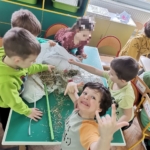 23 września, zgodnie z naszą wieloletnią tradycją, powitaliśmy jesień Metodą Porannego Kręgu, angażując wszystkie zmysły – wzrok, słuch, dotyk, węch i smak. Kilka dni później (27.09) odbyło się spotkanie pod tytułem „Motyli Wolontariat” z Gościem z Hospicjum Palium. Przedszkolaki dowiedziały się, dlaczego „Pomaganie dodaje skrzydeł”, a także działały artystycznie malując motyle (symbol kampanii, o którym więcej >>tutaj<<). 28.09 każda grupa pobrudziła sobie rączki podczas samodzielnego krojenia warzyw do sałatki jarzynowej podanej później na drugie śniadanie. Będziemy kontynuować aktywności kulinarne, szykując kolejne posiłki, a Państwo oczekujcie naszych przepisów, by móc powtórzyć je w domu już ze świadomością, że pociechy „ogarniają temat” :-)).
