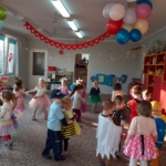 Po feriach, dnia, 15.02 obył się balik karnawałowy pod „batutą” profesjonalnej animatorki, która, prócz funkcji DJki i „wodzirejki” prowadzącej dziecięce korowody, zainicjowała szereg zabaw ruchowych z akcesoriami (Klanza, papierowe kulki, bańki mydlane). Dziękujemy rodzicom za wyszykowanie pięknych przebrań dla przedszkolaków! Tych tradycyjnych i nowoczesnych, od superbohaterów po Smerfy, od rycerzy po ekipę Psiego Patrolu, od księżniczek Disneya po Sowelle i Gexony, Minecraftowe stwory i Sonici :-).