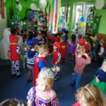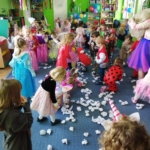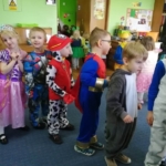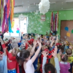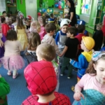 Wszystkie dzieci z niecierpliwością czekały na bal przebierańców, który w tym roku odbył się w środku trwającego właśnie karnawału. Przedszkole opanowały niezmordowane Elzy (który to już rok fenomenu „Frozen?”), Spidermany, Batmany, Supermany, Ironmany i many, many more… 🙂 Furkotały skrzydełka biedronek, pszczółek, wróżek i smoków. Nie zabrakło też dzielnych rycerzy i przedstawicieli służb mundurowych, na szczęście bez akcesoriów do pacyfikacji ;-). Dzieci brały udział w zabawach tanecznych, rytmicznych i ruchowych w swoich, specjalnie przystrojonych na tę okazję salach. Nie zabrakło też balonów – pod sufity i na wynos :-).