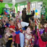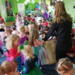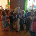 Kolejną atrakcją karnawałową był pokaz iluzjonistyczny Armanda Górnego, który zafundował dzieciom dobrą zabawę ubraną w magiczne sztuczki. Przedszkolaki nie wierzyły własnym oczom, ponieważ artysta sprawiał, że przedmioty znikały, pojawiały się znikąd, zmieniały kolory lub wyginały się, choć teoretycznie nie powinny. Nie będziemy zdradzać, co się tam działo – to trzeba po prostu zobaczyć! 🙂