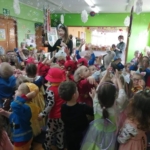 Wszystkie dzieci wzięły udział (po kolei;-)) w przedstawieniu teatralnym pt. „Pani Wiosna Radosna” w wykonaniu duetu aktorskiego z Zespołu KOP. Spektakl pełen humoru i śpiewu na żywo, interakcji i dobrej zabawy (i jeszcze raz śpiewu, hipnotyzującego głosu wspaniałej Aktorki!).