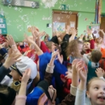Kontynuując, 21.02 uczestniczyliśmy w pokazie baniek mydlanych „Bańki i kolory”, poziom ekspercki ze sztuczkami oraz umiejętnościami zaskakującymi i małych, i dużych! Takiego show jeszcze u nas nie było – bańkowe bałwany latały pod sufitem, bańki przybierały kształty gąsienic, kwadratów, statków kosmicznych. Każdy ochotnik mógł dać się zamknąć w wielkiej mydlanej bańce! Coś wspaniałego!