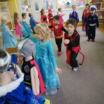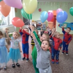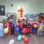 Wszystkie dzieci z niecierpliwością czekały na bal przebierańców, który w tym roku odbył się w środku trwającego właśnie karnawału. Przedszkole opanowały niezmordowane Elzy (który to już rok fenomenu „Frozen?”), Spidermany, Batmany, Supermany, Ironmany i many, many more… 🙂 Furkotały skrzydełka biedronek, pszczółek, wróżek i smoków. Nie zabrakło też dzielnych rycerzy i przedstawicieli służb mundurowych, na szczęście bez akcesoriów do pacyfikacji ;-). Dzieci brały udział w zabawach tanecznych, rytmicznych i ruchowych w swoich, specjalnie przystrojonych na tę okazję salach. Nie zabrakło też balonów – pod sufity i na wynos :-).