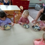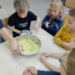 23 września, zgodnie z naszą wieloletnią tradycją, powitaliśmy jesień Metodą Porannego Kręgu, angażując wszystkie zmysły – wzrok, słuch, dotyk, węch i smak. Kilka dni później (27.09) odbyło się spotkanie pod tytułem „Motyli Wolontariat” z Gościem z Hospicjum Palium. Przedszkolaki dowiedziały się, dlaczego „Pomaganie dodaje skrzydeł”, a także działały artystycznie malując motyle (symbol kampanii, o którym więcej >>tutaj<<). 28.09 każda grupa pobrudziła sobie rączki podczas samodzielnego krojenia warzyw do sałatki jarzynowej podanej później na drugie śniadanie. Będziemy kontynuować aktywności kulinarne, szykując kolejne posiłki, a Państwo oczekujcie naszych przepisów, by móc powtórzyć je w domu już ze świadomością, że pociechy „ogarniają temat” :-)).
