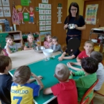 Nasi zerówkowicze uczestniczyli też w spotkaniu z wolontariuszem z Hospicjum Palium. Dowiedzieli się, czym jest wolontariat, dlaczego „Pomaganie dodaje skrzydeł” i tworzyli piękne motyle (symbol kampanii na rzecz rozbudowy hospicjum). O tym, dlaczego akurat motyle, możecie państwo przeczytać –>tutaj<–.