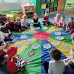 - 21.03 – polisensoryczne powitanie wiosny metodą Porannego Kręgu, przejście ulicami osiedla w wiosennym pochodzie – prosimy ubrać dzieci na zielono lub z elementami wiosennymi,