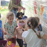 Finał marca to oczywiście Wielkanoc i wizyta Zajączka. Na uroczyste świąteczne śniadanie dzieci same szykowały faszerowane jajka z połączenia żółtek i awokado. Jajeczka, przyozdobione kiełkami i rzeżuchą hodowaną w każdej grupie, wyglądały pięknie, acz smakowały… jednym tak, innym nie 🙂 Zgodnie z oczekiwaniami dzieci Zając przykicał do Przedszkola, a upominki ukrył w ogrodzie. Ich poszukiwanie wymagało trochę gimnastyki fizycznej i mentalnej, zgodnie z instrukcjami zostawionymi na liścikach.