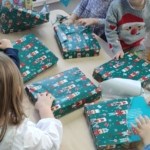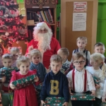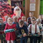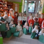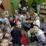 Udało nam się też obejrzeć kolejny film z Nowych Horyzontów Edukacji Filmowej o przygodach Kacpra i Emmy, a tuż przed „prawdziwą” Gwiazdką mieliśmy własną, uroczystą Wigilię, na której nie zabrakło barszczyku, pierogów i pierniczków. Gwiazdor też zaszczycił nas swoją rozległą obecnością ;-), a przedszkolaki otrzymały atrakcyjne upominki.