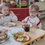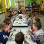 23 września, zgodnie z naszą wieloletnią tradycją, powitaliśmy jesień Metodą Porannego Kręgu, angażując wszystkie zmysły – wzrok, słuch, dotyk, węch i smak. Kilka dni później (27.09) odbyło się spotkanie pod tytułem „Motyli Wolontariat” z Gościem z Hospicjum Palium. Przedszkolaki dowiedziały się, dlaczego „Pomaganie dodaje skrzydeł”, a także działały artystycznie malując motyle (symbol kampanii, o którym więcej >>tutaj<<). 28.09 każda grupa pobrudziła sobie rączki podczas samodzielnego krojenia warzyw do sałatki jarzynowej podanej później na drugie śniadanie. Będziemy kontynuować aktywności kulinarne, szykując kolejne posiłki, a Państwo oczekujcie naszych przepisów, by móc powtórzyć je w domu już ze świadomością, że pociechy „ogarniają temat” :-)).