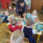 Nasi zerówkowicze uczestniczyli też w spotkaniu z wolontariuszem z Hospicjum Palium. Dowiedzieli się, czym jest wolontariat, dlaczego „Pomaganie dodaje skrzydeł” i tworzyli piękne motyle (symbol kampanii na rzecz rozbudowy hospicjum). O tym, dlaczego akurat motyle, możecie państwo przeczytać –>tutaj<–.