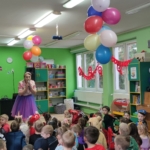 Kontynuując, 21.02 uczestniczyliśmy w pokazie baniek mydlanych „Bańki i kolory”, poziom ekspercki ze sztuczkami oraz umiejętnościami zaskakującymi i małych, i dużych! Takiego show jeszcze u nas nie było – bańkowe bałwany latały pod sufitem, bańki przybierały kształty gąsienic, kwadratów, statków kosmicznych. Każdy ochotnik mógł dać się zamknąć w wielkiej mydlanej bańce! Coś wspaniałego!
