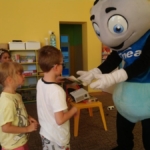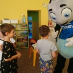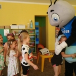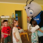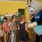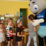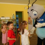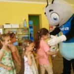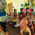 W czerwcu gościliśmy ponownie Zespół KOP, który wystąpił ze swoim najlepszym, niemal musicalowym wydaniu z przedstawieniem: „Idzie lato, co wy na to?”. Ponadto, dzięki uprzejmości i zaangażowaniu rodziców Jasia z grupy IV („Czerwone Kapturki i Wilki”) przedszkolaki spotkały się z maskotką firmy ENEA, Świetlikiem. Świetlik i mama Jasia opowiedzieli dzieciom o tym, jakie są źródła pozyskiwania energii elektrycznej, z uwzględnieniem bezpiecznego korzystania z prądu w domu oraz zachowania podczas wyładowań atmosferycznych. To ważne, szczególnie, że kataklizmy pogodowe nawiedzają nas od czasu do czasu, w szczególności właśnie burze z porywistymi wiatrami.