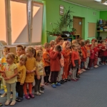 23 września, zgodnie z naszą wieloletnią tradycją, powitaliśmy jesień Metodą Porannego Kręgu, angażując wszystkie zmysły – wzrok, słuch, dotyk, węch i smak. Kilka dni później (27.09) odbyło się spotkanie pod tytułem „Motyli Wolontariat” z Gościem z Hospicjum Palium. Przedszkolaki dowiedziały się, dlaczego „Pomaganie dodaje skrzydeł”, a także działały artystycznie malując motyle (symbol kampanii, o którym więcej >>tutaj<<). 28.09 każda grupa pobrudziła sobie rączki podczas samodzielnego krojenia warzyw do sałatki jarzynowej podanej później na drugie śniadanie. Będziemy kontynuować aktywności kulinarne, szykując kolejne posiłki, a Państwo oczekujcie naszych przepisów, by móc powtórzyć je w domu już ze świadomością, że pociechy „ogarniają temat” :-)).