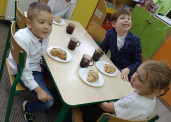23 września, zgodnie z naszą wieloletnią tradycją, powitaliśmy jesień Metodą Porannego Kręgu, angażując wszystkie zmysły – wzrok, słuch, dotyk, węch i smak. Kilka dni później (27.09) odbyło się spotkanie pod tytułem „Motyli Wolontariat” z Gościem z Hospicjum Palium. Przedszkolaki dowiedziały się, dlaczego „Pomaganie dodaje skrzydeł”, a także działały artystycznie malując motyle (symbol kampanii, o którym więcej >>tutaj<<). 28.09 każda grupa pobrudziła sobie rączki podczas samodzielnego krojenia warzyw do sałatki jarzynowej podanej później na drugie śniadanie. Będziemy kontynuować aktywności kulinarne, szykując kolejne posiłki, a Państwo oczekujcie naszych przepisów, by móc powtórzyć je w domu już ze świadomością, że pociechy „ogarniają temat” :-)).