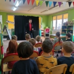 6 grudnia gościliśmy, w ramach Mikołajek, naprawdę wytrawnego iluzjonistę, Lucky Luke’a, którego topową sztuczką, według dzieci, było znikające światełko :-). Również w grudniu dwie grupy (IV i VI) odbyły spacer w śniegu do Księgarni Z Bajki na zajęcia warsztatowe z Panią Doriną Maciejką, autorką książki pt. „O Gwiazdce, która nie świeciła” – dzieci słuchały, bawiły się i działały kreatywnie.