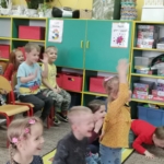 23 września, zgodnie z naszą wieloletnią tradycją, powitaliśmy jesień Metodą Porannego Kręgu, angażując wszystkie zmysły – wzrok, słuch, dotyk, węch i smak. Kilka dni później (27.09) odbyło się spotkanie pod tytułem „Motyli Wolontariat” z Gościem z Hospicjum Palium. Przedszkolaki dowiedziały się, dlaczego „Pomaganie dodaje skrzydeł”, a także działały artystycznie malując motyle (symbol kampanii, o którym więcej >>tutaj<<). 28.09 każda grupa pobrudziła sobie rączki podczas samodzielnego krojenia warzyw do sałatki jarzynowej podanej później na drugie śniadanie. Będziemy kontynuować aktywności kulinarne, szykując kolejne posiłki, a Państwo oczekujcie naszych przepisów, by móc powtórzyć je w domu już ze świadomością, że pociechy „ogarniają temat” :-)).