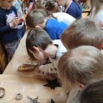 6 grudnia gościliśmy, w ramach Mikołajek, naprawdę wytrawnego iluzjonistę, Lucky Luke’a, którego topową sztuczką, według dzieci, było znikające światełko :-). Również w grudniu dwie grupy (IV i VI) odbyły spacer w śniegu do Księgarni Z Bajki na zajęcia warsztatowe z Panią Doriną Maciejką, autorką książki pt. „O Gwiazdce, która nie świeciła” – dzieci słuchały, bawiły się i działały kreatywnie.