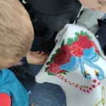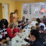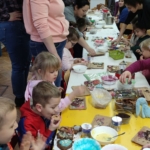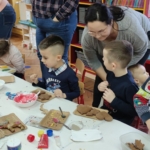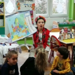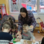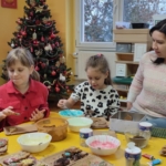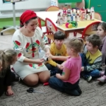 W Tygodniu Wielokulturowym (akcja UNICEF) poznawaliśmy lepiej naszych sąsiadów z Ukrainy – poprzez bajki edukacyjne, zajęcia warsztatowe z Panią Tatianą, która opowiadała o tradycjach (fryzury, stroje i akcesoria ludowe, zwyczaje i rękodzieło), a także nauczyła nas robić lalki-motanki. Malowaliśmy tradycyjną Petrykivkę akwarelami, czytaliśmy baśnie z różnych stron świata, rozmawialiśmy o zwyczajach świątecznych poza granicami naszego państwa. Poszczególne grupy odwiedzili rodzice (dziękujemy!) z propozycją warsztatów kulinarnych. Tydzień Wielokulturowy zakończył się piernikowaniem (gromkim i radosnym) oraz tworzeniem łańcucha choinkowego – ten zdobi już hall Przedszkola, dziękujemy za zaangażowanie :-).
