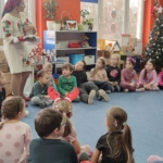 Udało nam się też obejrzeć kolejny film z Nowych Horyzontów Edukacji Filmowej o przygodach Kacpra i Emmy, a tuż przed „prawdziwą” Gwiazdką mieliśmy własną, uroczystą Wigilię, na której nie zabrakło barszczyku, pierogów i pierniczków. Gwiazdor też zaszczycił nas swoją rozległą obecnością ;-), a przedszkolaki otrzymały atrakcyjne upominki.