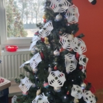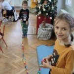 Grudzień to zawsze czas świątecznych przygotowań. Przedszkole zmienia się w małą Laponię – w każdym pomieszczeniu udekorowana choinka, girlandy, tysiące lampek. Gwiazdorki/Mikołaje zwisają z drabinek, spoglądają na dzieci z półeczek w towarzystwie elfów, reniferów, bałwanków i innych świątecznych dekoracji charakterystycznych tylko dla Bożego Narodzenia. Na co dzień słychać kolędy w języku polskim i angielskim, w wersjach tradycyjnych, instrumentalnych, po górolsku, a także po angielsku, włączając to hity z list przebojów. W tym roku w dzień przedszkolnej Wigilii było ciut inaczej, bo zabrakło dwóch grup, aczkolwiek pozostałe dzieci świętowały jak należy, co widać na załączonych obrazkach :-).