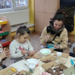 Listopad przepełniony był atrakcjami i aktywnościami, ale udało się go wspólnymi siłami udźwignąć 🙂 Podczas Dnia Postaci z Bajek (4.11) był czas na zabawę, tańce i swawole, by z kolei dnia 10.11 już z pełną powagą uczcić Narodowe Święto Niepodległości. W połowie listopada odbyły się warsztaty garncarskie, na których dzieci miały okazję poczuć w dłoniach prawdziwą, surową glinę – taką, która potem wymaga wypalenia w specjalnym piecu. Przedszkolaki tworzyły swoje małe dzieła korzystając z własnej wyobraźni i pracy rąk, pod czujnym okiem Pani artystki. Ozdoby wrócą do właścicieli po wypaleniu w ok. 1000 stopni Celsjusza :-).