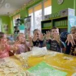 23 września, zgodnie z naszą wieloletnią tradycją, powitaliśmy jesień Metodą Porannego Kręgu, angażując wszystkie zmysły – wzrok, słuch, dotyk, węch i smak. Kilka dni później (27.09) odbyło się spotkanie pod tytułem „Motyli Wolontariat” z Gościem z Hospicjum Palium. Przedszkolaki dowiedziały się, dlaczego „Pomaganie dodaje skrzydeł”, a także działały artystycznie malując motyle (symbol kampanii, o którym więcej >>tutaj<<). 28.09 każda grupa pobrudziła sobie rączki podczas samodzielnego krojenia warzyw do sałatki jarzynowej podanej później na drugie śniadanie. Będziemy kontynuować aktywności kulinarne, szykując kolejne posiłki, a Państwo oczekujcie naszych przepisów, by móc powtórzyć je w domu już ze świadomością, że pociechy „ogarniają temat” :-)).