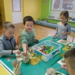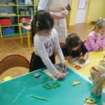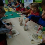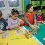 Listopad przepełniony był atrakcjami i aktywnościami, ale udało się go wspólnymi siłami udźwignąć 🙂 Podczas Dnia Postaci z Bajek (4.11) był czas na zabawę, tańce i swawole, by z kolei dnia 10.11 już z pełną powagą uczcić Narodowe Święto Niepodległości. W połowie listopada odbyły się warsztaty garncarskie, na których dzieci miały okazję poczuć w dłoniach prawdziwą, surową glinę – taką, która potem wymaga wypalenia w specjalnym piecu. Przedszkolaki tworzyły swoje małe dzieła korzystając z własnej wyobraźni i pracy rąk, pod czujnym okiem Pani artystki. Ozdoby wrócą do właścicieli po wypaleniu w ok. 1000 stopni Celsjusza :-).