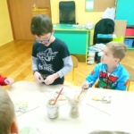 Pozostałe atrakcje miesiąca marca były już tylko i wyłącznie naszymi wewnętrznymi wydarzeniami. Wiosnę, dokładnie tak, jak każdą inną porę roku, witaliśmy polisensoryczną Metodą Porannego Kręgu. Oglądaliśmy, dotykaliśmy, słuchaliśmy wiosny, wąchaliśmy ją i próbowaliśmy, jak smakuje. Każda grupa posadziła swoje własne roślinki ogrodowe, które po Zimnej Zośce trafią do skrzynek zewnętrznych. Co roku każda grupa sadzi własne warzywa, owoce, kwiaty, potem dba o nie, obserwuje wzrost i rozwój oraz oczywiście zbiera ewentualne plony. Nasz ogród jest największym dobrodziejstwem. Odbyliśmy też ceremonialny spacer po uliczkach osiedla, zgodnie ze starym ludowym zwyczajem, ozdobieni elementami roślinnymi, z tzw. „gaikiem”, nieśliśmy wiosenną radość okolicznym mieszkańcom.