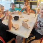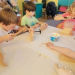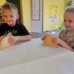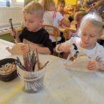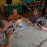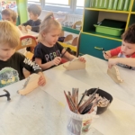 Listopad przepełniony był atrakcjami i aktywnościami, ale udało się go wspólnymi siłami udźwignąć 🙂 Podczas Dnia Postaci z Bajek (4.11) był czas na zabawę, tańce i swawole, by z kolei dnia 10.11 już z pełną powagą uczcić Narodowe Święto Niepodległości. W połowie listopada odbyły się warsztaty garncarskie, na których dzieci miały okazję poczuć w dłoniach prawdziwą, surową glinę – taką, która potem wymaga wypalenia w specjalnym piecu. Przedszkolaki tworzyły swoje małe dzieła korzystając z własnej wyobraźni i pracy rąk, pod czujnym okiem Pani artystki. Ozdoby wrócą do właścicieli po wypaleniu w ok. 1000 stopni Celsjusza :-).