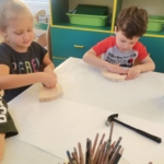 11.10 przedszkolaki wzięły udział w warsztatach stolarskich z ramienia Pracowni ArtZagroda. Dzieci poznały bliżej zawód stolarza, charakterystykę materiału, jakim jest drewno, które samodzielnie poddały wstępnej obróbce (szlifowanie papierem ściernym). Sylwetkę jeża (toż to jesień:-) zaopatrzyły w kolce z kołków drewnianych (wciskanych, dobijanych młoteczkami), a potem pomalowały swoje małe dziełko, osiągając w ten sposób swój własny sukces!