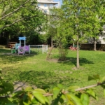 Ogromnym atutem naszego Przedszkola jest niewątpliwie ogród. Dysponujemy obszernym terenem zielonym w centrum miasta, co nie zdarza się często, można więc powiedzieć, że mamy szczęście :-). Wiadomo jednak, że szczęściu trzeba pomagać, dlatego nie tylko dbamy o nasze ogrody w podstawowym zakresie, ale też staramy się wprowadzać korzystne zmiany – sadzimy drzewa i krzewy (brzozy zacieniające piaskownice, tuje, jako naturalne ekrany akustyczne), zakładamy rabaty, wykorzystujemy ogród do celów edukacyjnych i wychowawczych (nie tylko wiedza o świecie przyrodniczym, ale też umiłowanie go). Można pokusić się o stwierdzenie, że korzystamy z hortiterapii. „Hortiterapia to rodzaj rehabilitacji, związanej z uprawieniem ogrodnictwa. Bliski kontakt z naturą w założeniu ma obniżyć stres, poprawić nastrój, przywrócić równowagę psychiczną(…)” (za portal.abczdrowie.pl). Nasz ogród to również rzadko spotykane okazy, w tym drzewa: Katalpa (Surmia), Mamutowiec olbrzymi, Kasztan jadalny czy Klon palmowy. Ponadto, mamy piękną Magnolię, Migdałka trójklapowego, kilka krzewów forsycji, różaneczniki, bzy i róże kilku odmian. Kilka lat temu założyliśmy własny sad, w którym owocują jabłka, gruszki, czereśnie, wiśnie, brzoskwinie, śliwki, porzeczki i agrest. W owalnym klombie ogrodu startowego dla maluchów kwitną wiosenne cebule sadzone jesienią przez dzieci: kilka odmian szafirków, hiacyntów, żonkile, wiele odmian tulipanów. W części ogrodu ze „Statkiem” (sprzęt ogólnorozwojowy) znajdują się też zeszłoroczne sadzonki bergenii, funkii, żurawek, wrzosów, konwalii i dzwonków. Skrzynie w ogrodzie i korytka na balustradach zapełnią się wkrótce sadzonkami pomidorów, marchwi, rzodkwi, ziemniaków, brokułów i sałaty, które dzieci posadziły uprzednio w salach. Posadzony kilka lat temu żywy wigwam wierzbowy ma się dobrze. Dysponujemy też własnymi szyszkami ;-), generalnie materiałem przyrodniczym wykorzystywanym przez dzieci w zabawach, w edukacji i działalności artystycznej.