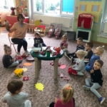 Listopad przepełniony był atrakcjami i aktywnościami, ale udało się go wspólnymi siłami udźwignąć 🙂 Podczas Dnia Postaci z Bajek (4.11) był czas na zabawę, tańce i swawole, by z kolei dnia 10.11 już z pełną powagą uczcić Narodowe Święto Niepodległości. W połowie listopada odbyły się warsztaty garncarskie, na których dzieci miały okazję poczuć w dłoniach prawdziwą, surową glinę – taką, która potem wymaga wypalenia w specjalnym piecu. Przedszkolaki tworzyły swoje małe dzieła korzystając z własnej wyobraźni i pracy rąk, pod czujnym okiem Pani artystki. Ozdoby wrócą do właścicieli po wypaleniu w ok. 1000 stopni Celsjusza :-).