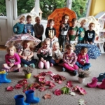 - wszystkie przedszkolaki zapoznały się z zasadami kompostowania i późniejszego wykorzystania odpadów bioorganicznych w formie nawozu; na całej przestrzeni naszego wspaniałego ogrodu każdy chętny zuch mógł pracować z użyciem grabi i taczek, by zredukować trochę ilość opadłych liści klonowych, które w dużej mierze napełnią kompostowniki; dodatkowym walorem tej pracy była nauka radosnego współdziałania 🙂