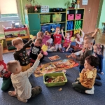- 21.03 – polisensoryczne powitanie wiosny metodą Porannego Kręgu, przejście ulicami osiedla w wiosennym pochodzie – prosimy ubrać dzieci na zielono lub z elementami wiosennymi,