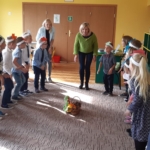Wszystkie dzieci wzięły udział (po kolei;-)) w przedstawieniu teatralnym pt. „Pani Wiosna Radosna” w wykonaniu duetu aktorskiego z Zespołu KOP. Spektakl pełen humoru i śpiewu na żywo, interakcji i dobrej zabawy (i jeszcze raz śpiewu, hipnotyzującego głosu wspaniałej Aktorki!).