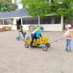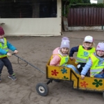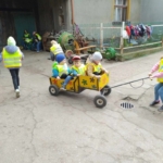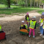 - wszystkie przedszkolaki zapoznały się z zasadami kompostowania i późniejszego wykorzystania odpadów bioorganicznych w formie nawozu; na całej przestrzeni naszego wspaniałego ogrodu każdy chętny zuch mógł pracować z użyciem grabi i taczek, by zredukować trochę ilość opadłych liści klonowych, które w dużej mierze napełnią kompostowniki; dodatkowym walorem tej pracy była nauka radosnego współdziałania 🙂