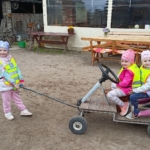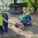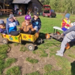 W połowie kwietnia starsze dzieci ruszyły na wycieczkę do jednego z chętniej uczęszczanych miejsc, mowa o Starej Chacie u Kowola w Kluczewie. Zwiedzanie agroturystyki obejmowało, m.in. pokaz kucia podkowy oraz wyrabiania masła, a także dojenia krowy „na żywo”, z możliwością udzielenia zwierzątku wsparcia duchowego poprzez przytrzymanie włochatego ogonka :-). Dzieci zwiedzały przeszło 100-letnią chatę z obejściem, a także przejechały się przyczepą ciągniętą przez traktor po malowniczej okolicy. Jak zwykle masę frajdy sprawił przedszkolakom czas wolny na podwórku zaopatrzonym we wszelkiego rodzaju tradycyjne jeździki, rowerki, pojazdy z przyczepkami, dwu i czteroślady. Agroturystyka „Stara Chata u Kowola” w Kluczewie to miejsce, do którego każdego roku z ogromną chęcią wracamy – bo warto.