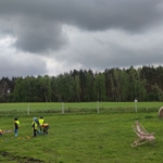 - obsadziliśmy dwoma gatunkami tujek płot wzdłuż linii tramwajowej; p. Andrzej rozplanował miejsca nasadzeń (dzięki!), natomiast my wykopaliśmy dołki, podsypaliśmy je materiałem organicznym z własnych kompostowników, wsadziliśmy i podlaliśmy obficie;