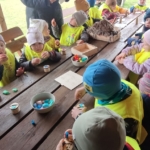 Finał marca to oczywiście Wielkanoc i wizyta Zajączka. Na uroczyste świąteczne śniadanie dzieci same szykowały faszerowane jajka z połączenia żółtek i awokado. Jajeczka, przyozdobione kiełkami i rzeżuchą hodowaną w każdej grupie, wyglądały pięknie, acz smakowały… jednym tak, innym nie 🙂 Zgodnie z oczekiwaniami dzieci Zając przykicał do Przedszkola, a upominki ukrył w ogrodzie. Ich poszukiwanie wymagało trochę gimnastyki fizycznej i mentalnej, zgodnie z instrukcjami zostawionymi na liścikach.