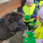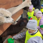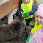 19 kwietnia obie grupy maluchów odwiedziły Ranczo Alpaka w Boduszewie, niedaleko Murowanej Gośliny. Miejsce stosunkowo nowe, z dala od zgiełku miasta, pośród pól i lasów. Punktem najważniejszym było oczywiście karmienie alpak, baranów i kóz krojoną marchewką – zwierzęta były przyjaźnie nastawione do małych gości, stąd wniosek, że są wprawione w boju ;-). Poza kontaktem ze zwierzakami, dzieci wzięły udział w zabawach ruchowych z animatorkami oraz wykonały prace plastyczne na stoisku craftowym. Wolnochodzące, bezwstydne kozy niemal pozbawiły nas drugiego śniadania! Ale ile było przy tym śmiechu – to nasze.